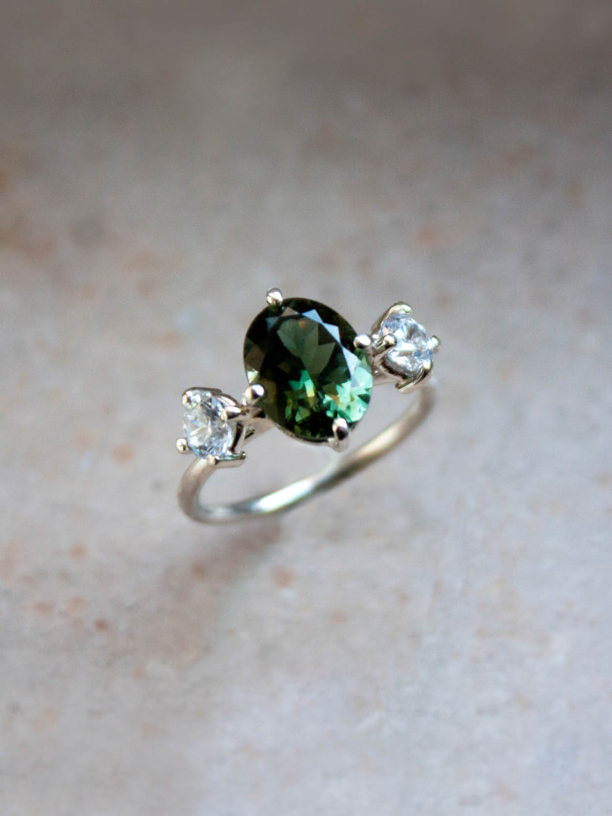 Réalisation • Bague, Tourmaline naturelle, Zircons, Argent 925