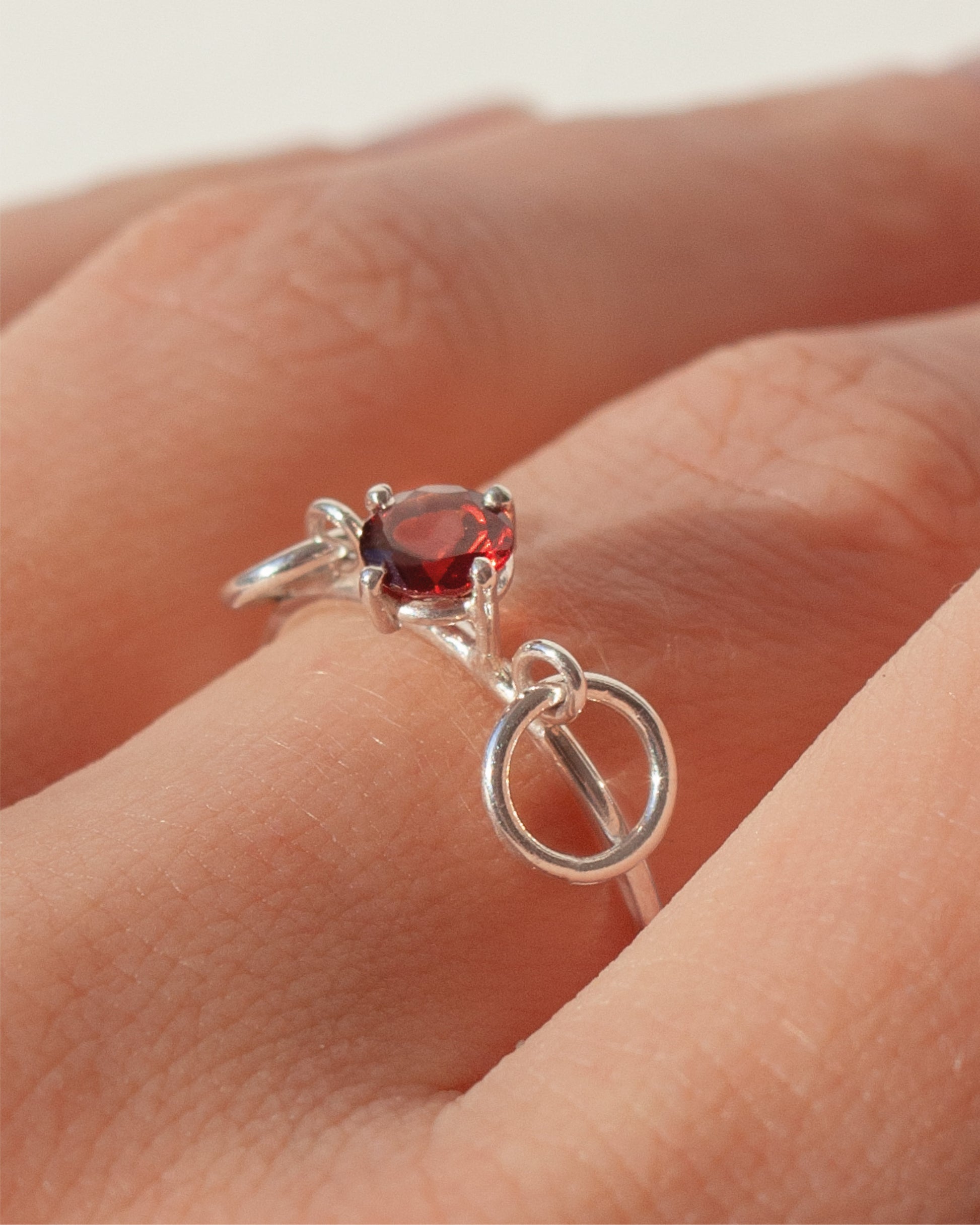 Un hommage à la Terre et à sa force intemporelle. Lyra allie puissance et douceur à travers ses trois éléments : deux anneaux mobiles et un grenat rouge profond. Une bague pensée pour celles et ceux qui portent la beauté comme une évidence.