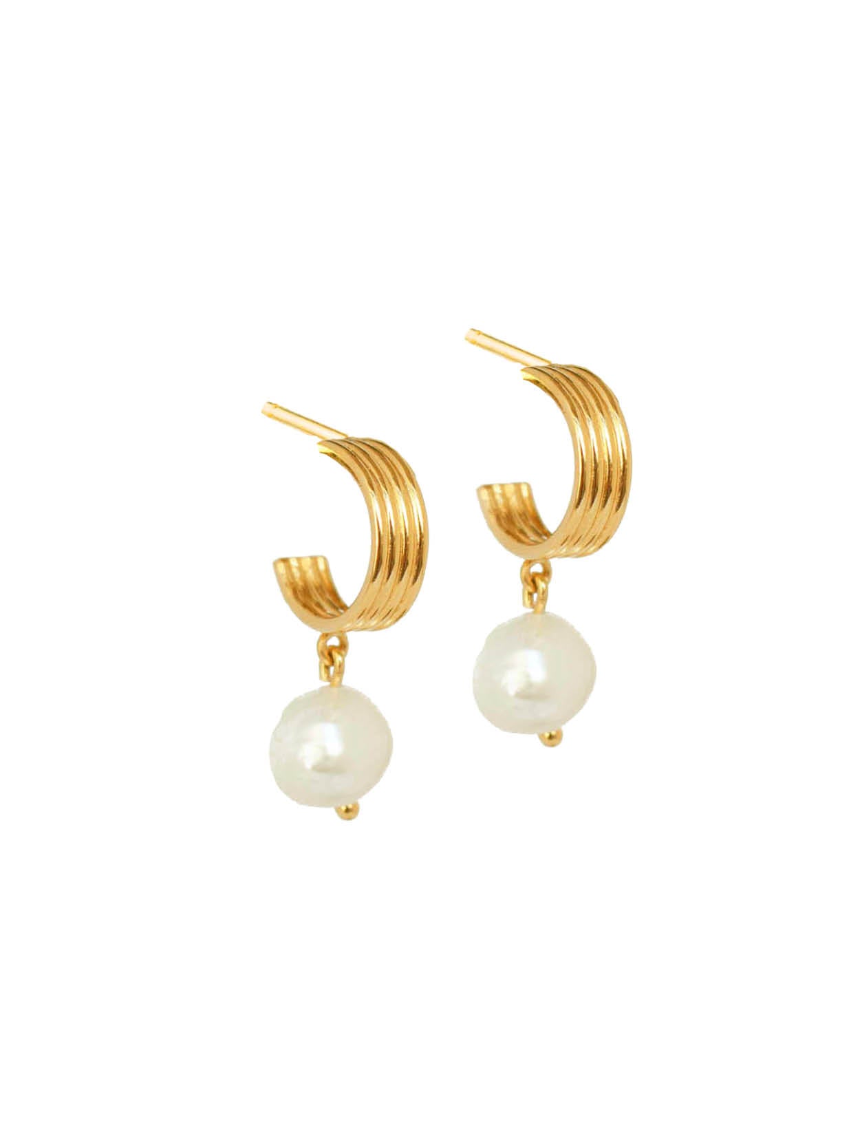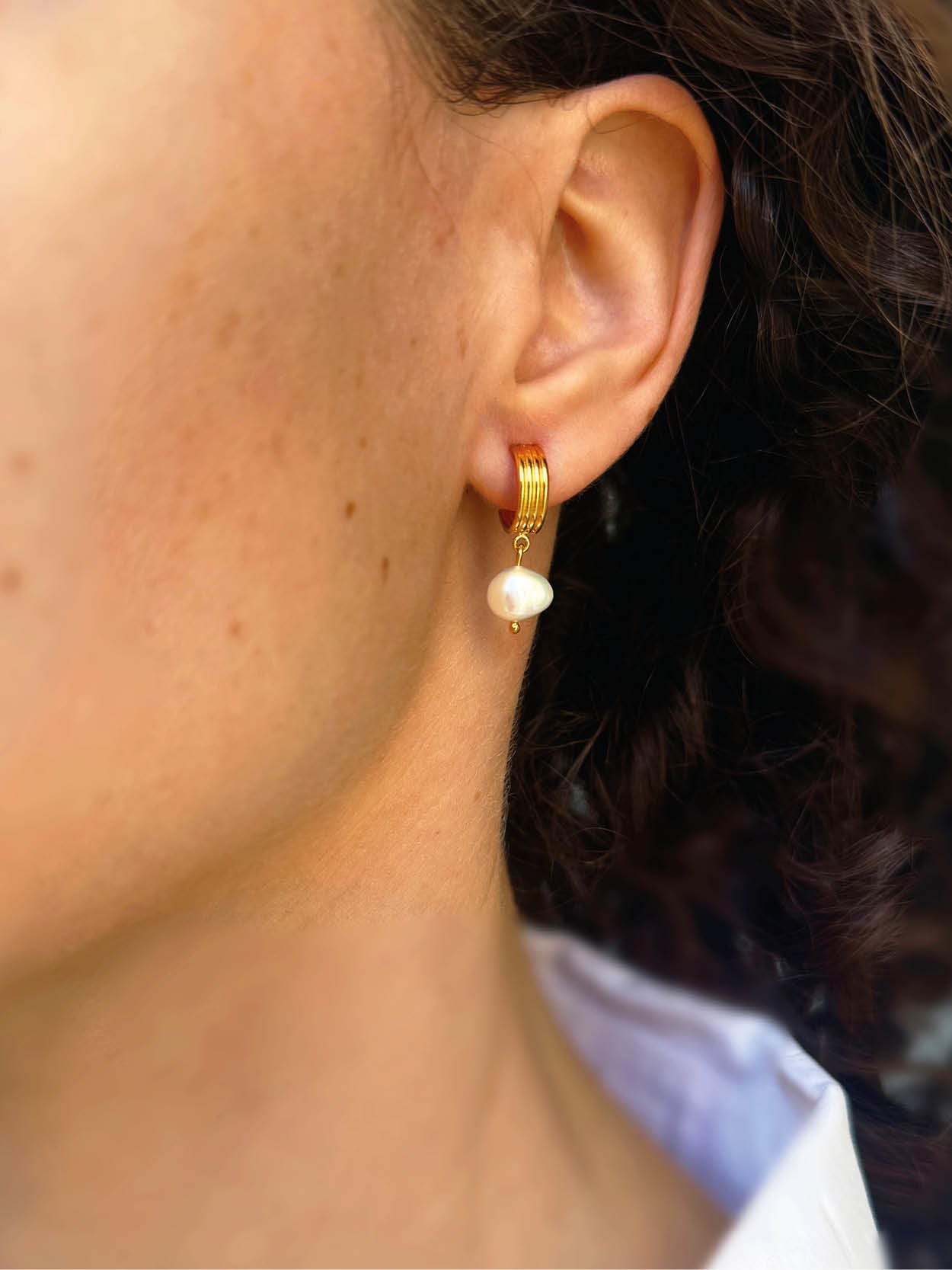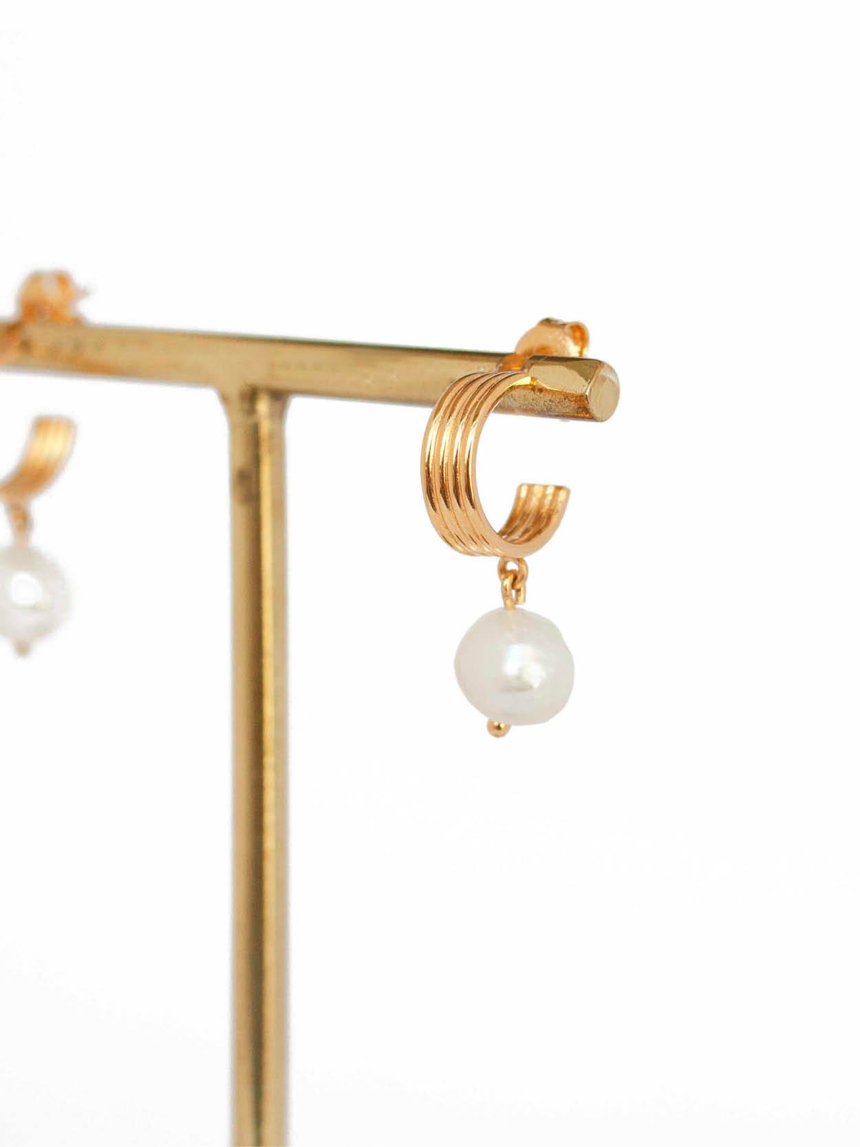 Élégantes et originales, créoles serties de deux perles blanches irrégulières naturelles.