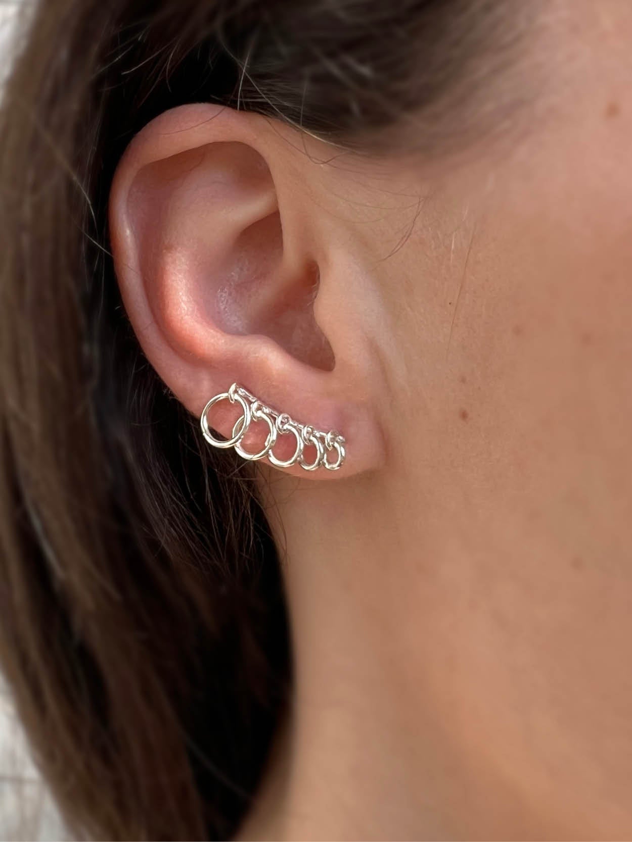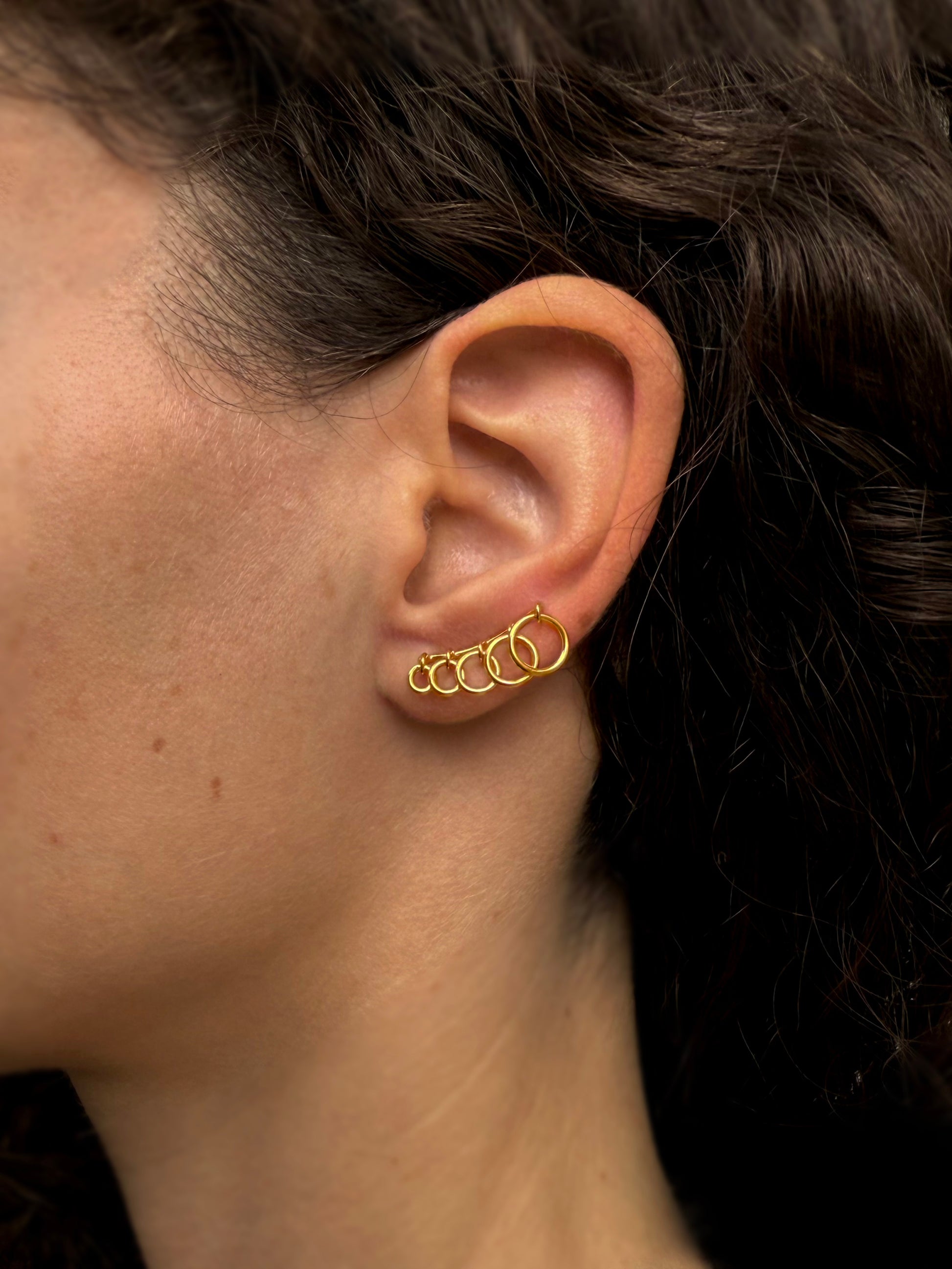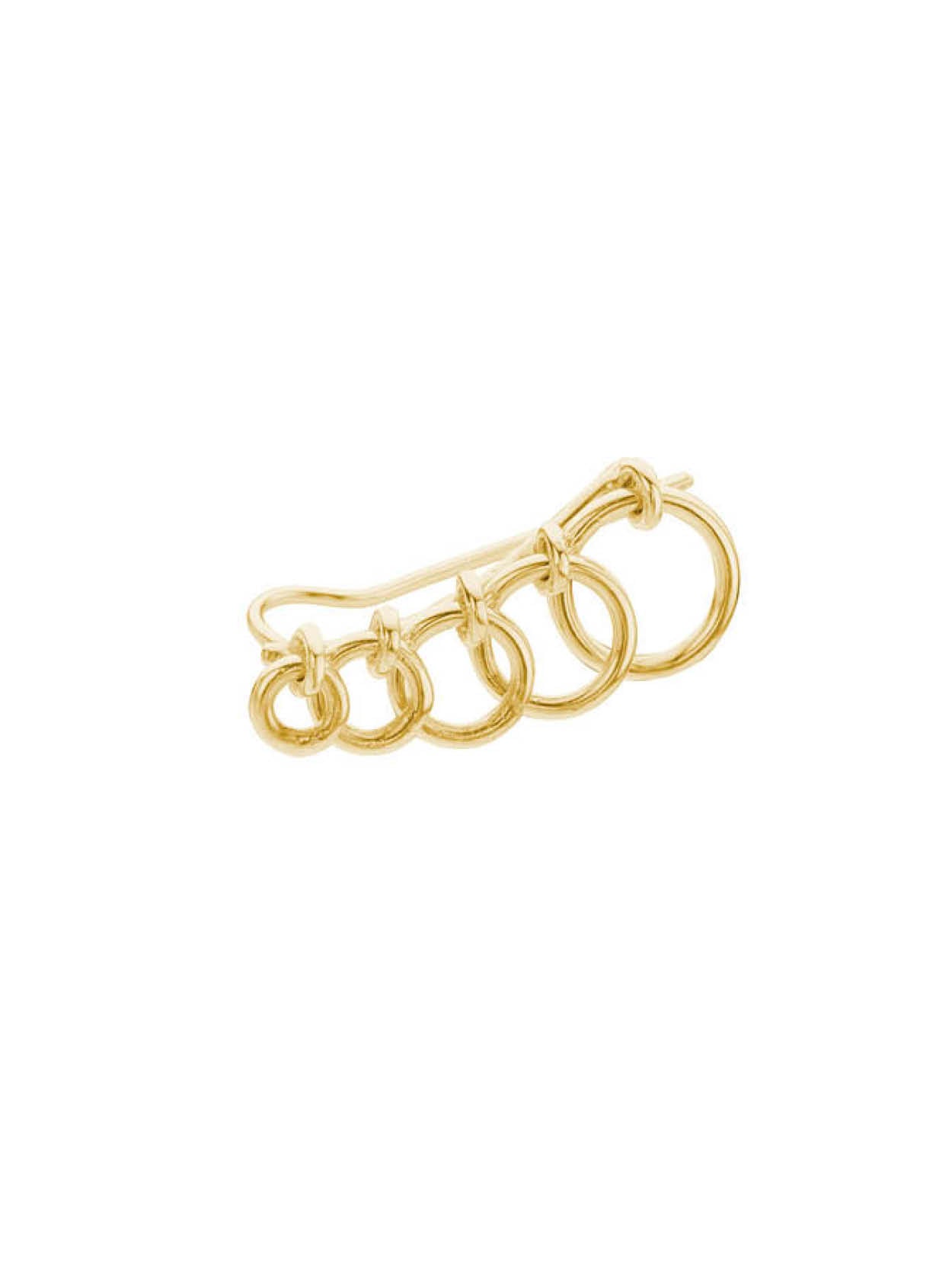 La boucle d'oreille Multi, composée de plusieurs anneaux qui se déplacent délicatement le long de la courbe de l'oreille.