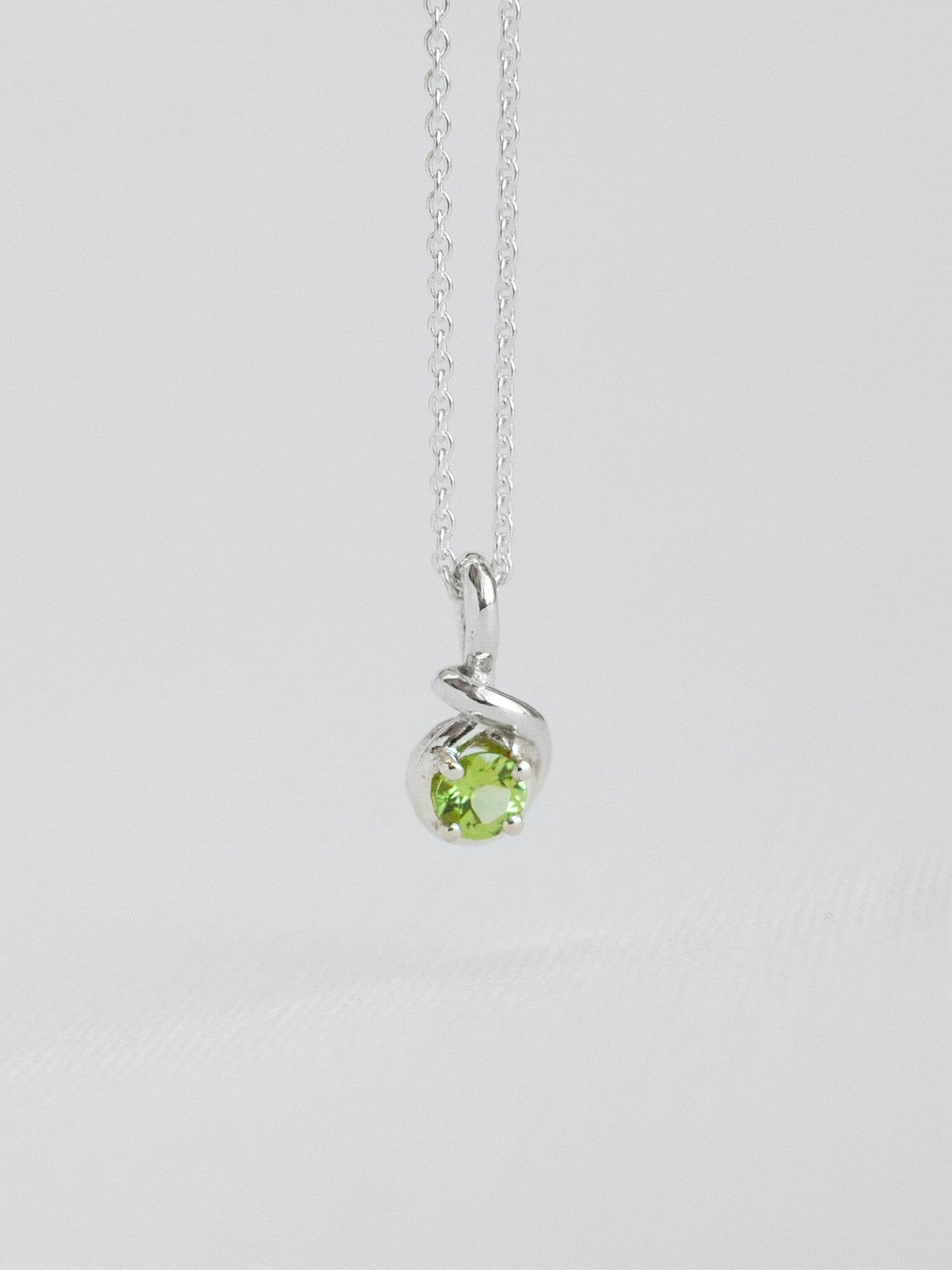 Le pendentif Isor vert est un jeu d’entrelacements serti d'un péridot vert scintillant en son coeur.