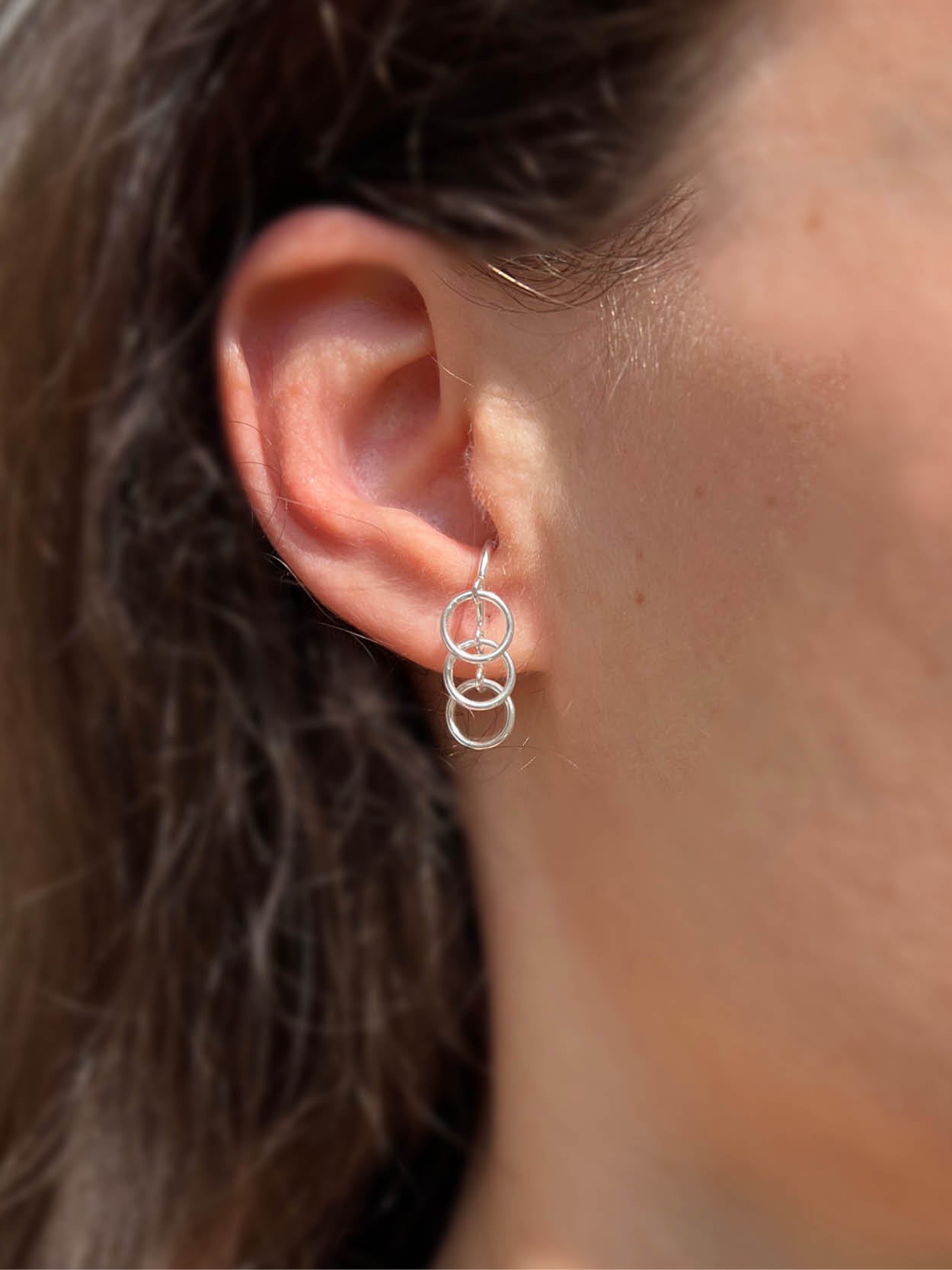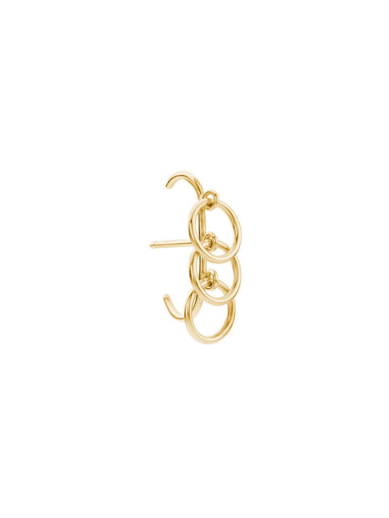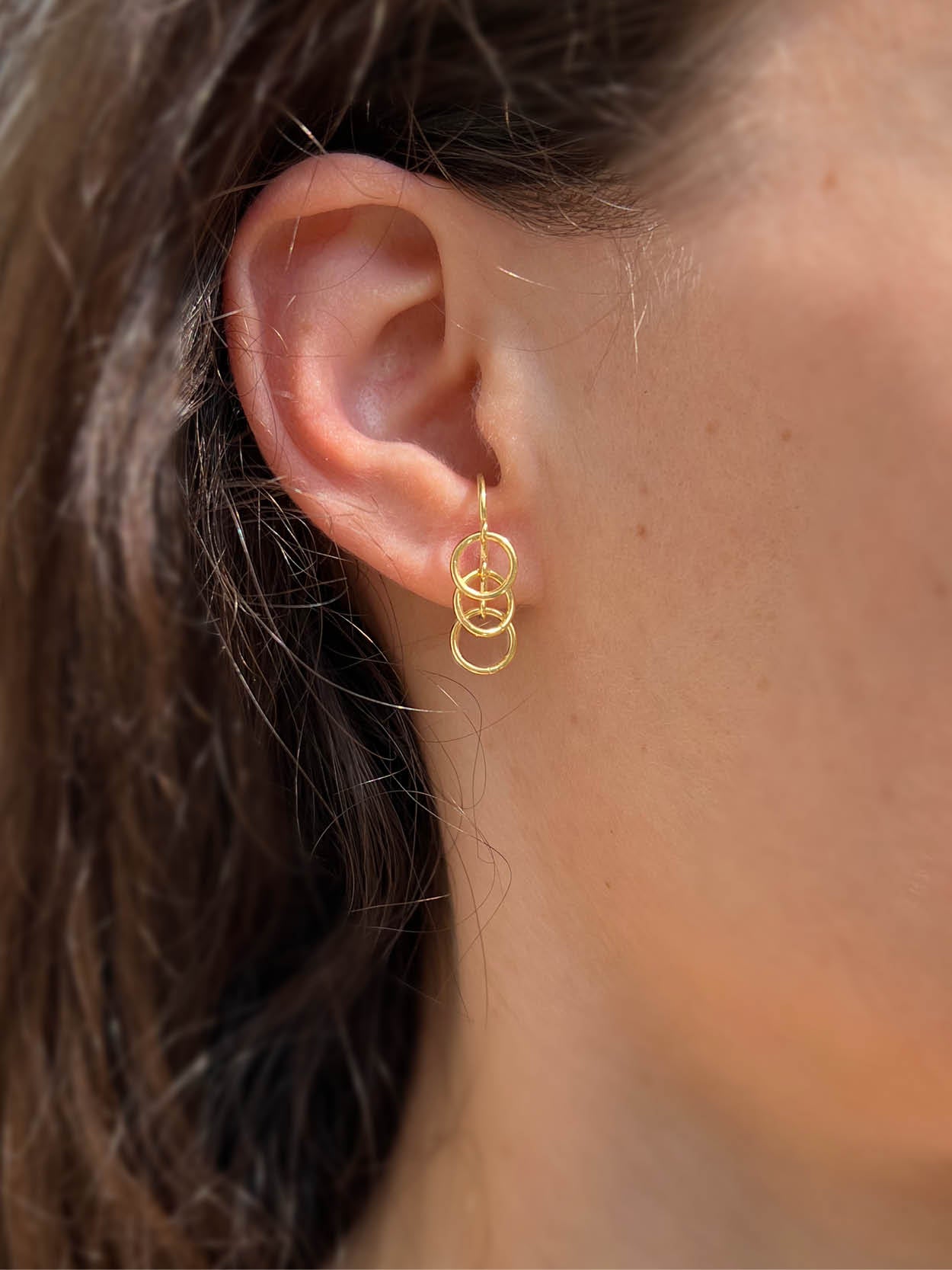 La boucle d'oreille Triple, ludique et élégante, composée de trois anneaux légers qui bougent au rythme de vos gestes.